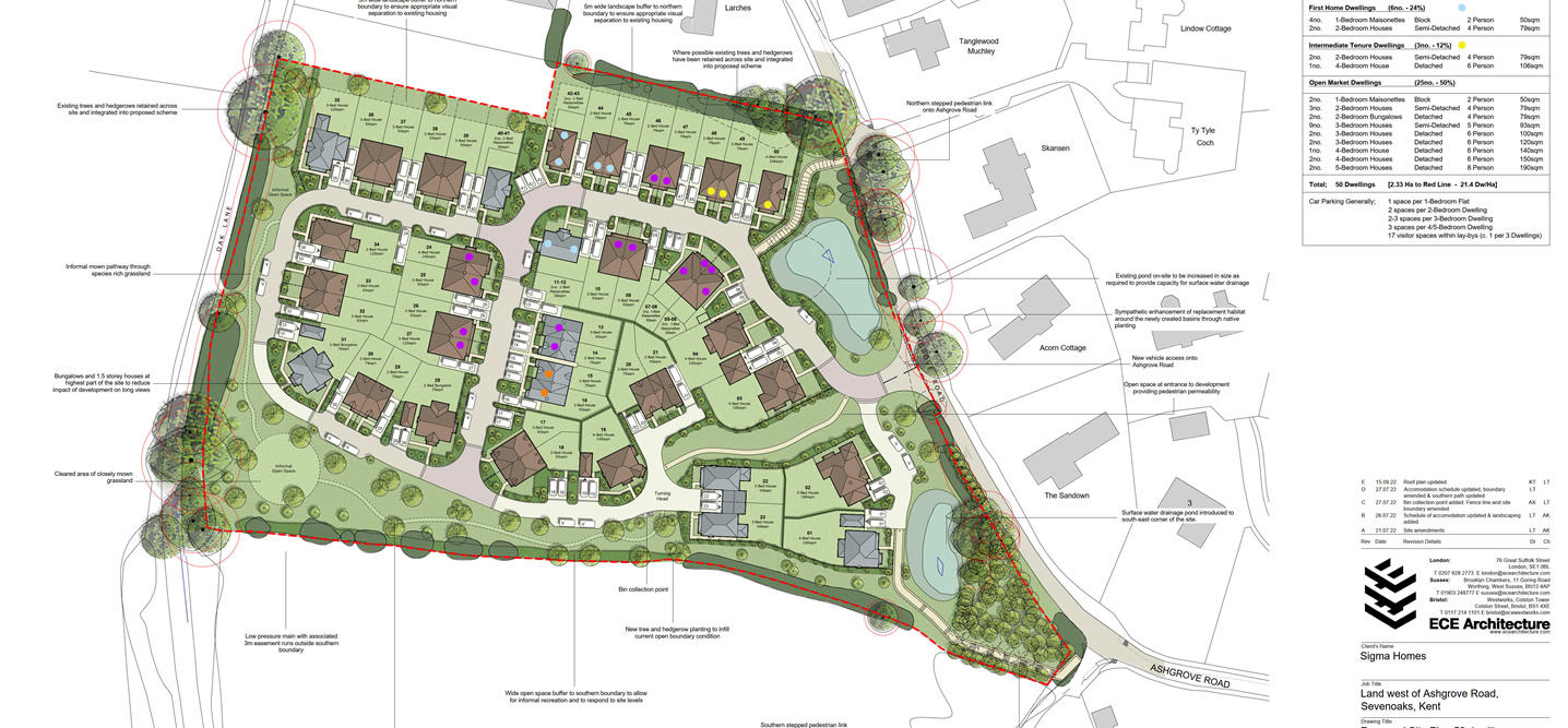 Sigma wish to build 50 houses on the land South Of Larches, Ashgrove Road, Sevenoaks, Kent.